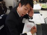ガラスに空気を入れている顔も伸びきっていて
