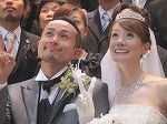 厳粛な式を終えた後は笑顔でのフラワーシャワー。