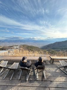 夜は山梨の夜景を見ながら露天風呂につかることができ
